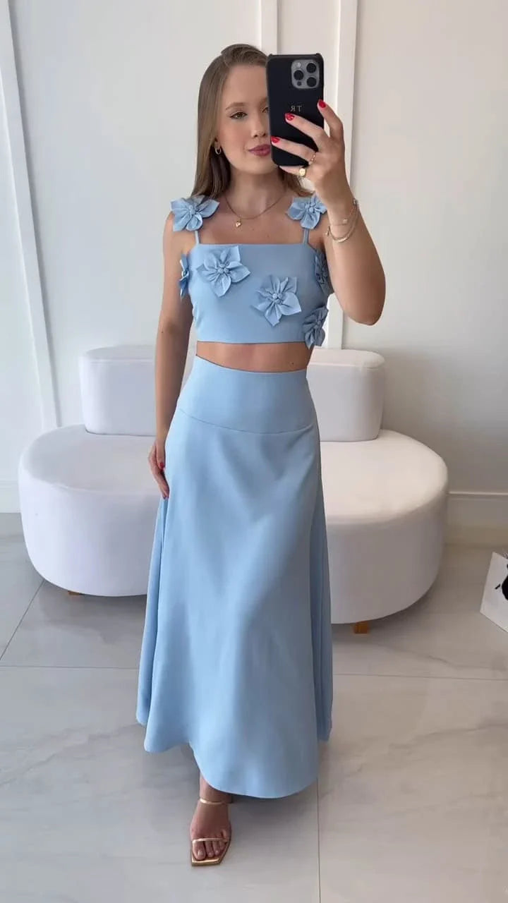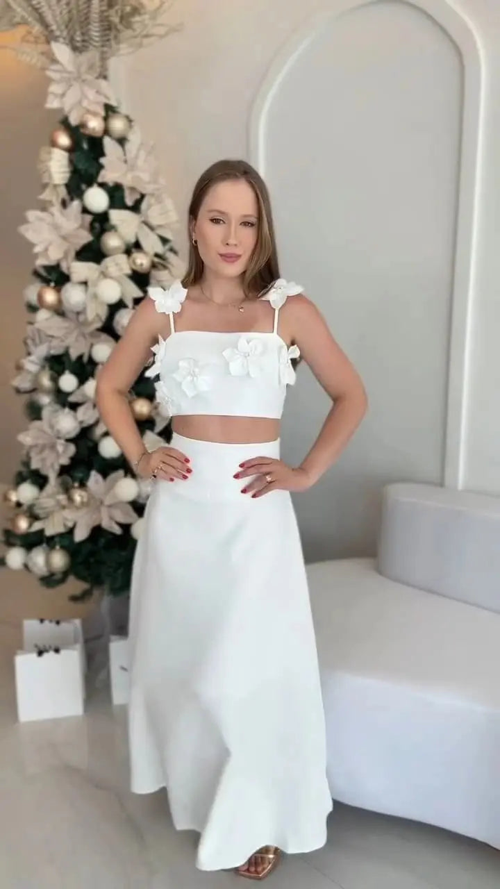 O Conjunto Silvana, em branco com detalhes florais, é a combinação perfeita de sofisticação e conforto. Feito com tecido de alta qualidade, oferece um caimento impecável e um toque delicado, ideal para diversas ocasiões.