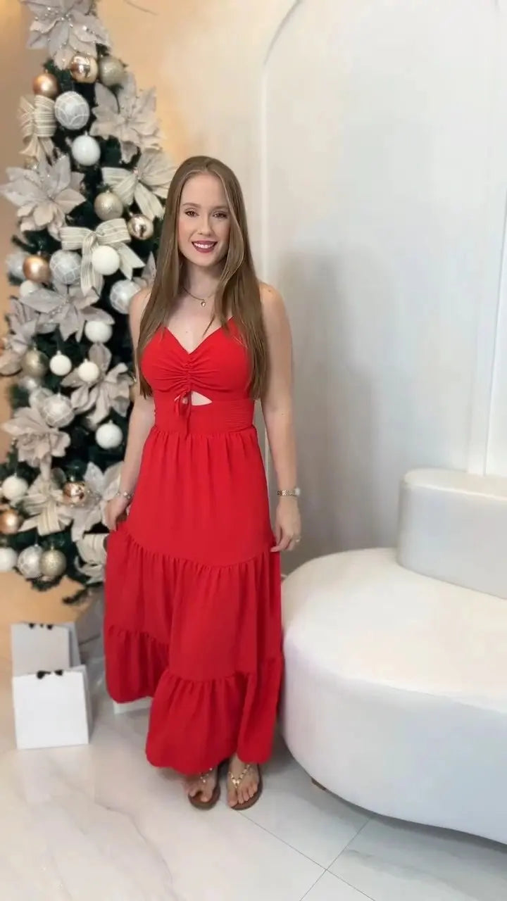 O Vestido Maria é a definição de sofisticação e presença. Em um tom vermelho intenso, seu design comprido e fluido valoriza a silhueta, garantindo um caimento impecável e um toque de glamour para qualquer ocasião especial. Feito com tecido leve e confortável, proporciona liberdade de movimento e um visual marcante.